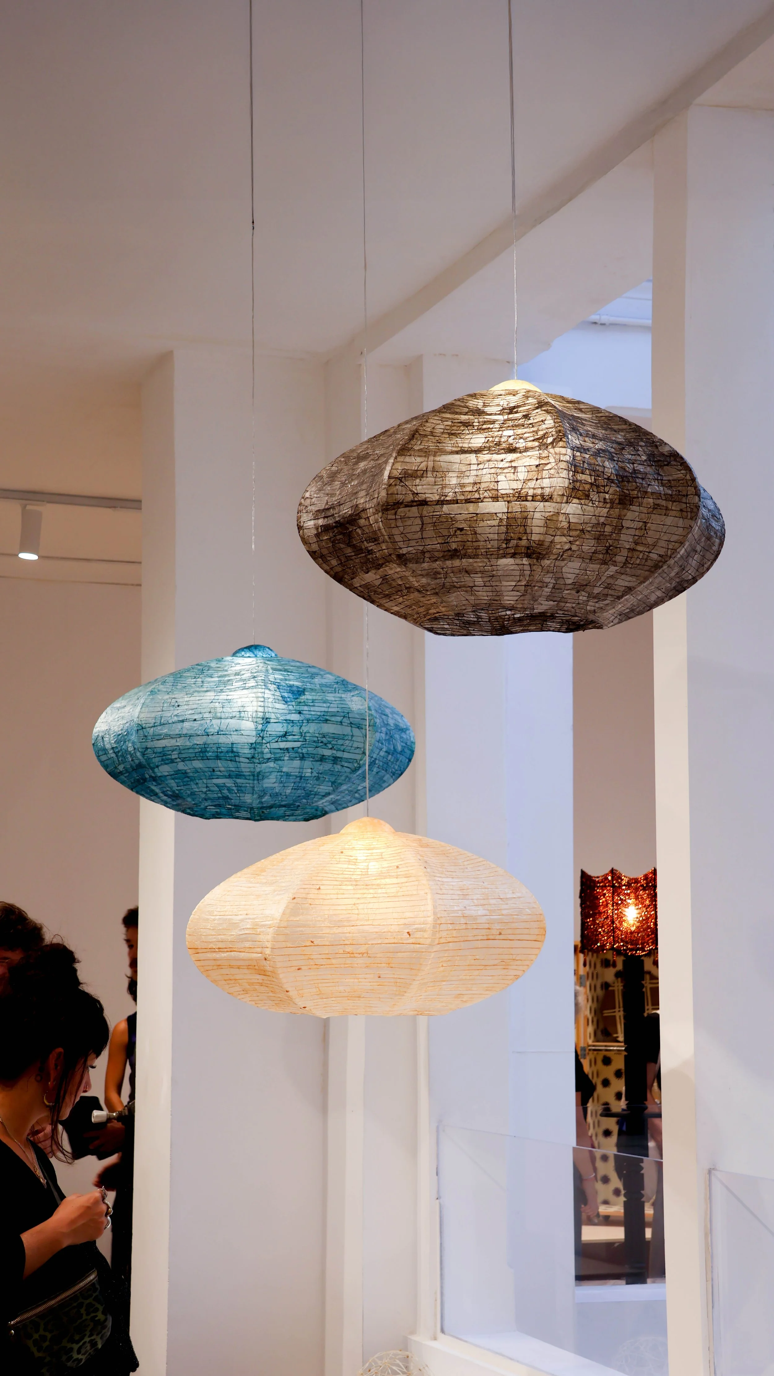 Il les travaille à la fois en fils et en plaques, pour obtenir une série de luminaires composés d’un matériau unique et bio-soudé. Loin d’être répugnante, la matière, une fois travaillée, s’apparente à un papier Washi, dont les veinages dessinent les motifs. Placée à la lumière, celle-ci révèle ses dessins singuliers et permet d’appuyer son essence biologique et l’esthétique si caractéristique du vivant.