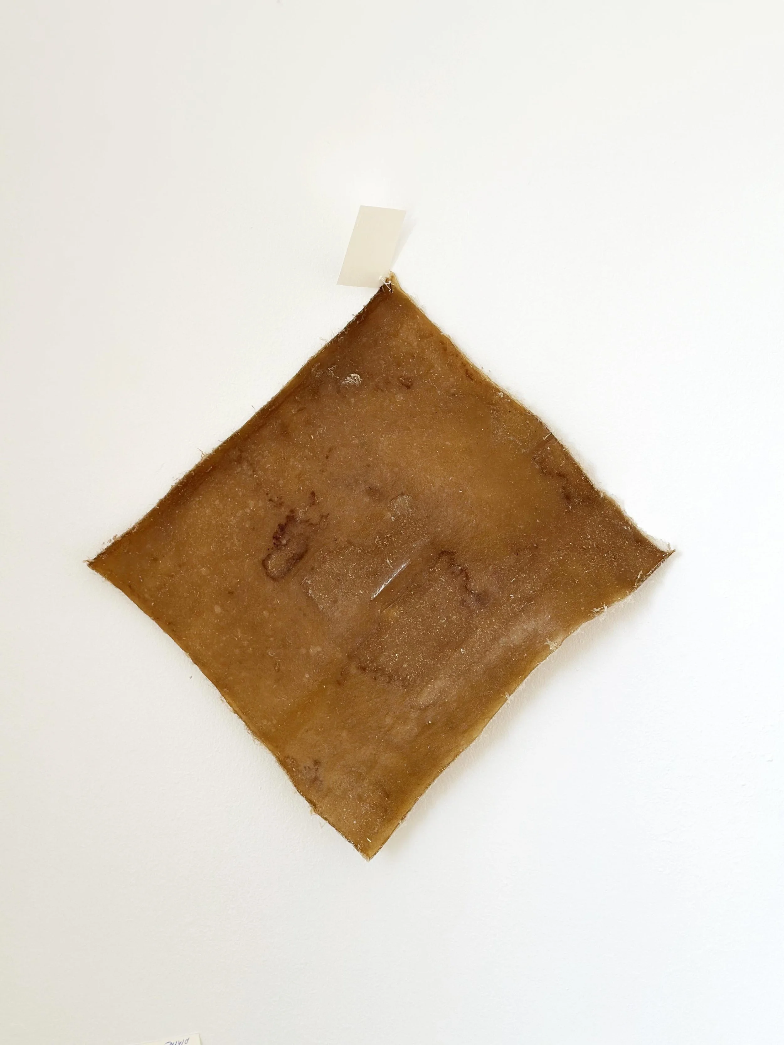 Lorsque Thibault récupère les intestins à la boyauderie, ceux-ci sont déjà lavés et placés dans des solutions de saumure ou de sel afin de les conserver. Il les travaille ensuite avec des techniques spécifiques, inspirées de la fabrication traditionnelle de fil, de papier ou du moulage. Il décrit son travail comme une co-construction de l’objet avec la matière première.